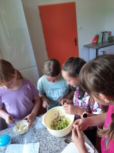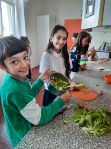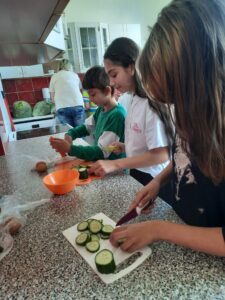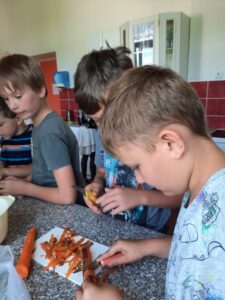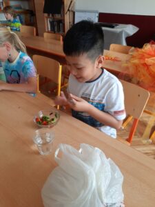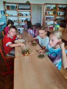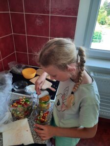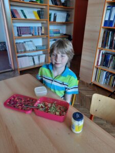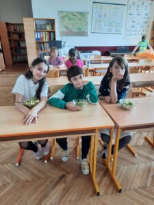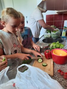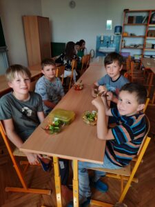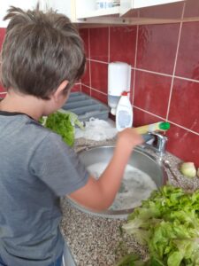 Dnes jsme využili úrodu z našeho pozemku a připravili si zdravý salát, každý podle své chuti 🙂